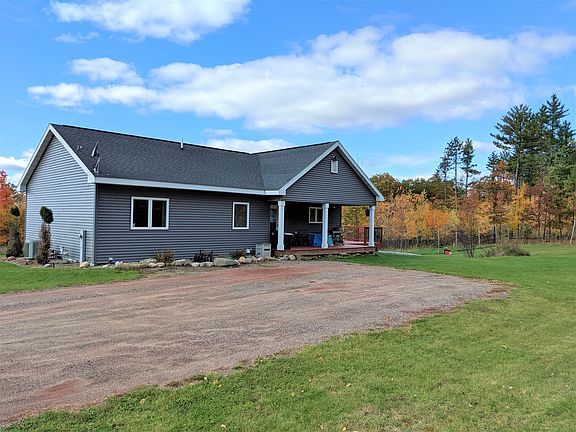 Modern, welcoming, and tasteful, this open-concept 3 bedroom, 3 bath ranch home is perfectly situated on 6.8+ acres close to town! Features include soaring vaulted ceilings, large kitchen island, stainless steel appliances, master suite, walkout lower level, and a spacious deck overlooking the pool and very private acreage.