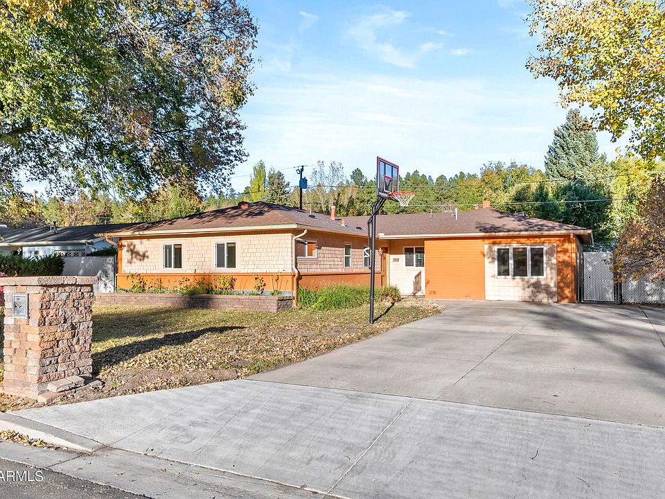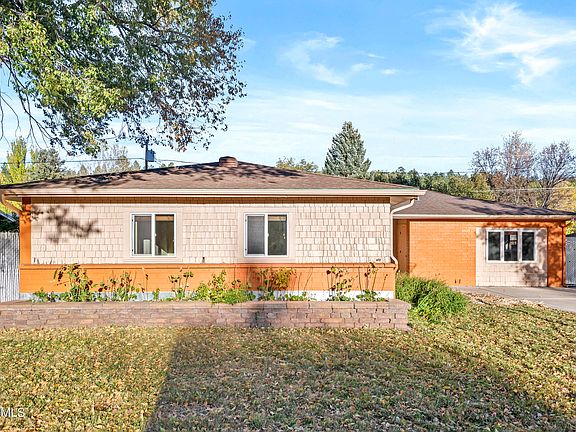 Come and see this amazing Coconino Estates home with mountain views. 1884 Square Feet, 4 Bed, 2 Bath, Dining/Living Room, large family room, close to schools and shopping await a new owner. The windows have been updated to newer double panes, the landscaping has old growth trees and there is a newer expansive driveway with a basketball hoop. There is a covered back patio, outside access to the laundry room, side yards with a large shed, workshop attached to the house and sidewalks that lead to a backyard grassed in the area. The eat-in kitchen with double sink, tiled flooring has ample room for the cook and entertaining guests. The Primary Bedroom has a tiled shower, painted cabinets and ample closet space. The Urban Trail System, Thorpe Park and Ditch Pool are a short bike ride or walk from this home. A new roof has been installed this November.
