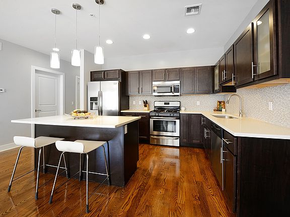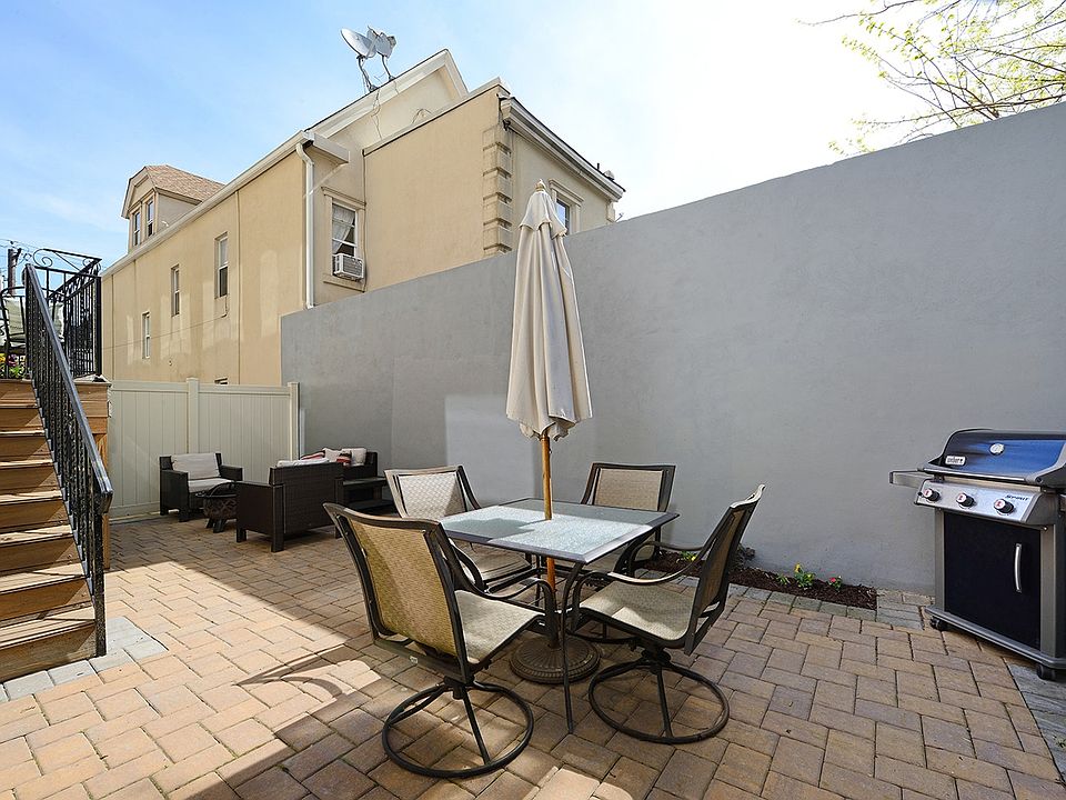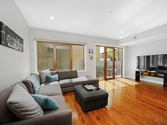 Bright and modern two bedroom and two bath condo with a beautiful 860 square foot landscaped private backyard and a deck, complete with a garage parking spot. This second floor south-east corner home is flooded with light and offers 1,415 square feet of living space, 9' ceilings and massive windows throughout. The spacious open concept floorplan features a kitchen with stainless steel appliances, granite countertops and soft close hazelnut cabinetry. Both bedrooms are enormous, with the master bedroom having a custom walk-in closet and en-suite bathroom with a double vanity and frameless glass shower enclosure. This home also comes equipped with hardwood floors, recessed lighting, in-unit washer/dryer, central air and heating. The Lexington house is a 12 unit elevator building offering a stylish lobby and video security application for buzzing people in. Conveniently located to New York City and metro area transportation with a bus stop around the corner. Close to shops, dining, parks and minutes from Trader Joe's in uptown Hoboken.