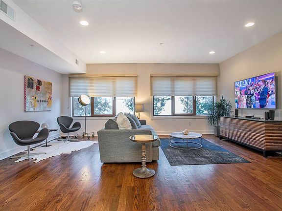 Modern luxury at the highly desirable Lexington House located in Union City. This spacious 2Bed/2Bath with an open kitchen concept that boasts stone countertops, stainless steel appliances, soft close cabinetry and a massive island for entertaining. This unit is also lined with windows providing tons of natural light and features spacious bedrooms with a large walk in closet in the master. Beautiful wood flooring throughout, recessed lighting, ample storage, central air and heating controlled by a Nest thermostat and assigned garage parking complete this home. Centrally located close to shops, dining and parks. Only a two block walk to the viaduct to Hoboken and plenty of public transportation for an easy commute to NYC!