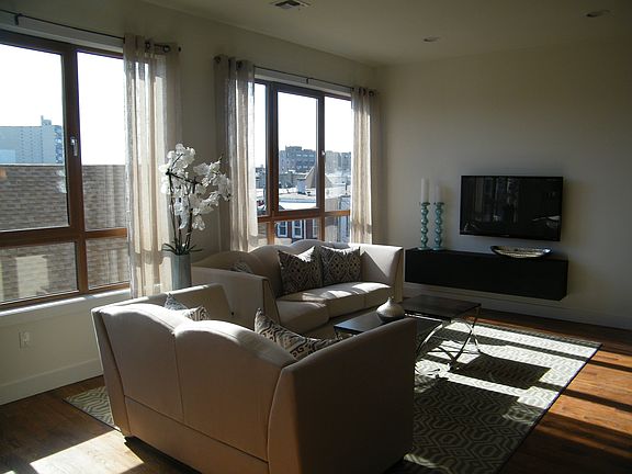 This 12 unit building has all 2 bedrooms and 2 baths available. This location offers easy commuting to NYC for work and entertainment. Building has parking, elevator, and community rooftop terrace with unobstructed views of NYC. Hardwood floors, stainless steel appliances, central air, and HUGE windows providing tons of light. 5 year tax abatement is also an ordinance.