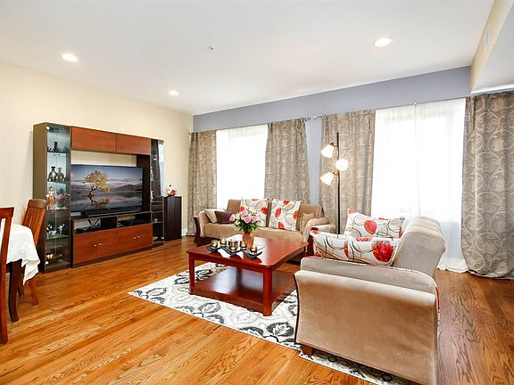 Welcome home to this 2 bedroom & 2 full baths condo at Lexington House in a prime location in Union City. Unit features large open concept living room and kitchen with windows throughout & eastern exposure that provides natural light and plenty of space to entertain. Master bedroom is located on the south-east corner of the building and has partial NYC views, en-suite bathroom and walk-in closet with custom shelving. Both bedrooms are large and with extra space that can be used as an office. Additional features include hardwood floors throughout, recessed lighting, custom shelving, central air and heating, customized high-end tiles in kitchen, and tandem 2 car garage parking. 2x5 Additional storage space at the back of the parking spot is also a plus. Unit is located near serene reservoir park and has easy access to NYC with bus on the corner with a 10 min ride to Times square, 15 min walk to Light Rail, and buses to Journal Square. Trader Joes in Hoboken is a 10 min ride and Whole Foods coming to the area.
