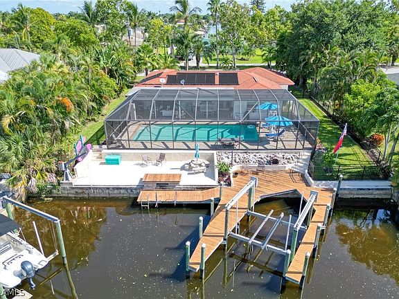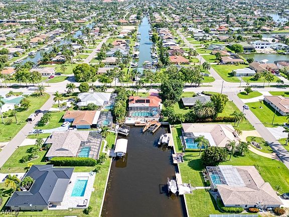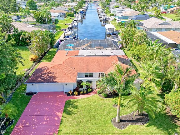 Need a home for you and your boat after Hurricane Ian? This home made it through like a champ. No water intrusion nor roof damage evident. It's all about the view - look directly down the gorgeous canal and you know you've moved to paradise. Quick direct boat access to the river and then the Gulf of Mexico. No bridges! Nicely updated 3 bedroom, 2 bath home features neutral tile and crown molding throughout. Spacious living room and kitchen overlook the lanai, huge pool and canal. Saltwater pool is heated for your year-around enjoyment and is surrounded by beautiful brick pavers and includes a generous sized covered lanai area for outdoor living. 10,000LB boat lift and oversized dock as well as a kayak launch are sure to please the avid boater.. The 2 car garage features epoxy flooring, laundry area and workbench. All openings are either impact glass or protected by storm shutters (electric and manual). This fantastic house is ready for you to call it home. Located off Del Prado Blvd on the beautiful Palaco Grande Pkwy., you'll have easy access to all Cape Coral and SW Florida has to offer.