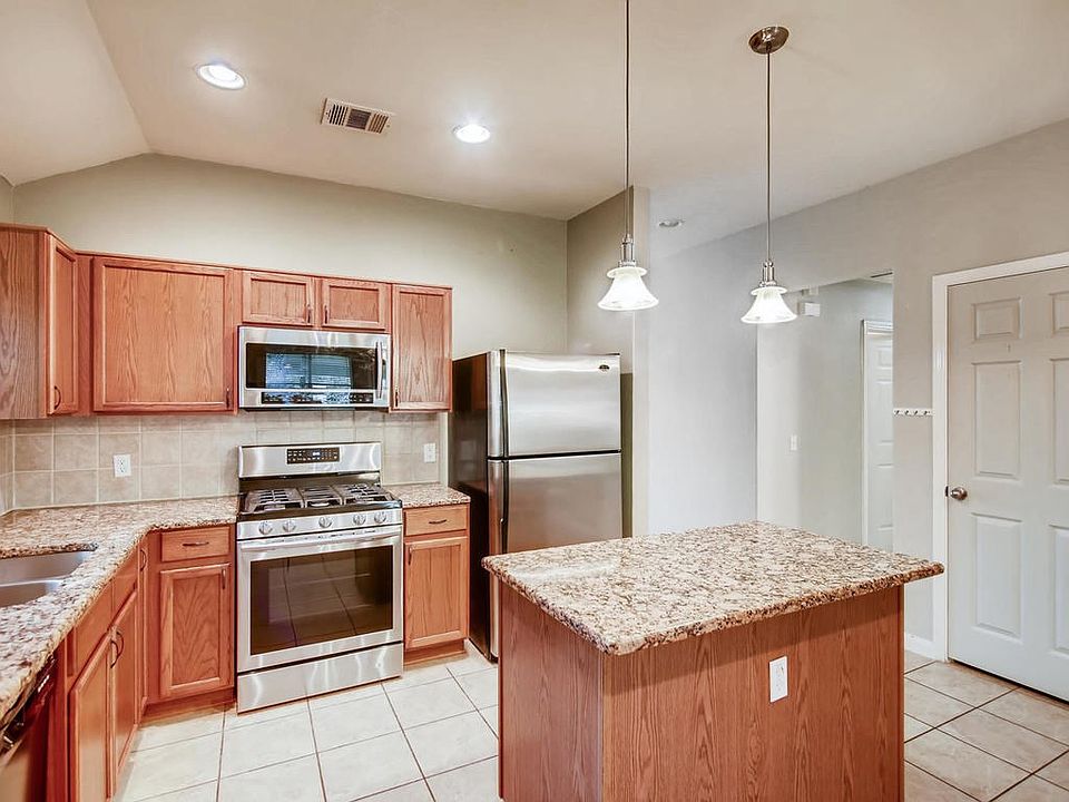One-story brick home in Sonoma Subdivision. This open floor plan offers 2 dining rooms & two living rooms, updated fixtures, granite countertops and stainless steel appliances, walk-in closet, garden tub and walk-in shower in master bathroom, a private fenced-in backyard backing to Forest Creek Park's pond, 2-car-garage, washer, dryer and refrigerator, neutral paint color throughout and lots of natural light. Schools rating according to Great Schools is 9 for both Elementary and Middle Schools.