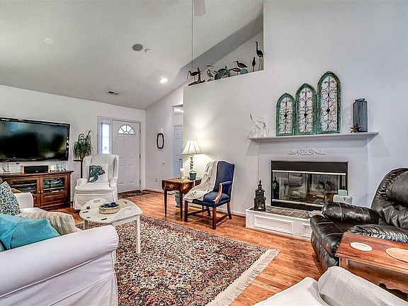 Come check out this ranch style home located just a half block from the beach. The charming home features 3 spacious bedrooms and 2 baths. The master suite features vaulted ceilings and double sink, jacuzzi tub and shower in the bathroom. The open great room has a fireplace, vaulted ceilings and more. The spacious galley kitchen features quartz countertops and tile flooring. This home is located out of flood zone, but is just steps from the beach. NO STAIRS and NO HOA make this a perfect home!