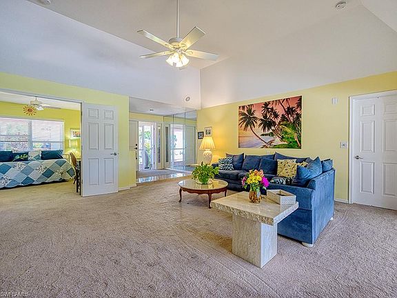 PRICE REDUCTION and BRAND NEW ROOF ! Interior being painted neutral throughout. Delightful one story home currently with four bedrooms. Fourth bedroom was formal dining room but currently used as a bedroom. Would make a lovely den as well. Two large closets , nice window and French doors. Large living room looking out to lanai hosts a large pool and spa. Pool bath and tiki bar to make this a splendid entertaining area. And the VIEW.....of the 7 th green and trees and plants giving you a park like feeling right in your own backyard. Don't miss the improvement sheet with all the improvements like Impact GPT windows and sliders and a new front door. Save the lanai for last and sit down and enjoy the fun you can have with the enjoyment of the beauty that surrounds you.