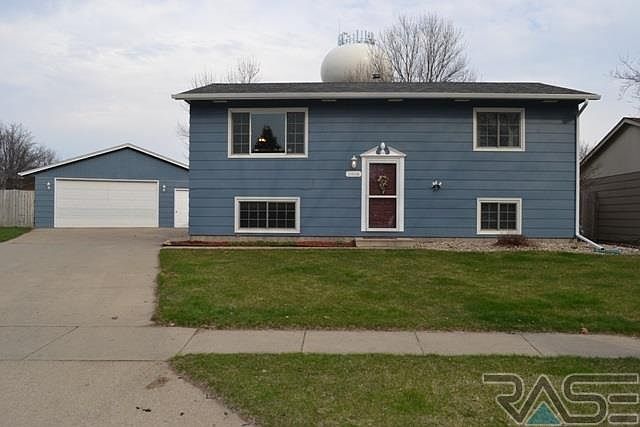 It's hard to find a huge fenced yard and massive garage to accompany a 4 bedroom, 2 bath home but it can be found here at the end of a cul-de-sac in southeast Sioux Falls. New carpet through the ample living room and down the hall where you will find two bedrooms, each with double closets. Wood laminate floors in the kitchen and dining room along with beautiful oak cabinets and a sliding door to a HUGE, freshly stained deck. Two more bedrooms in the lower level, plus a family room with new carpet and convenient toy room or exercise area. There is a full bath on each level. Updates include furnace and central air in 2009; Exterior paint, gutters and shingles in 2015; water heater 2013.