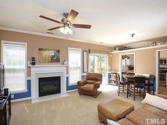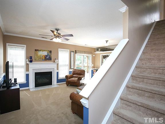 Beautifully maintained home situated on 12th hole of golf course. Hardwood laminate on first floor and wood fireplace in living room. New granite countertops and tile backsplash in kitchen.Refrigerator to convey. Roof installed 2014! Oversized deck with arbor. Washer and dryer on second floor with 3 bedrooms to convey. Meticulously landscaped yard with access to Neuse River Greenway. Community offers fitness center, pools, trails, tennis and golf in maintenance fee.