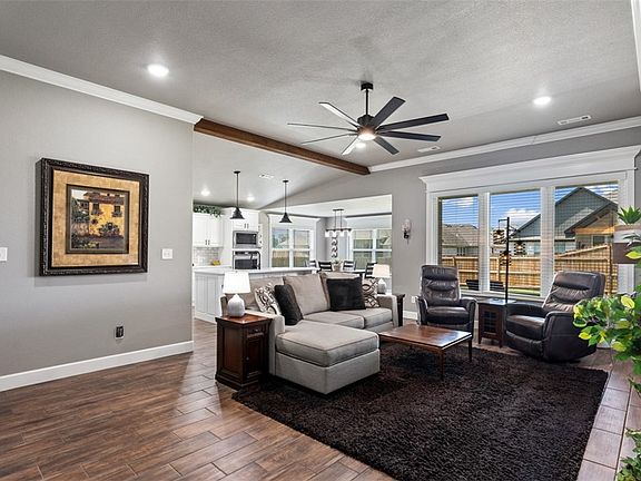 Both the home and neighborhood are full of charm and character. The lots are thoughtfully arranged to make the area look beautiful and welcoming. The kitchen features a large island, quartz countertops, a gas range, and a pantry. The primary bedroom offers privacy, while two additional bedrooms and a full bathroom provide plenty of space for guests. This home also includes an oversized three-car garage. The backyard is perfect for entertaining, with a covered patio seating area. Modern features include a custom tile shower in the master bathroom, his-and-hers sinks, and a farmhouse sink in the kitchen. Located in a fantastic community with great curb appeal.