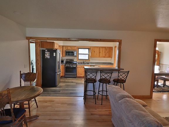 Newly remodeled home on a large city lot in an excellent location. The home offers a spacious kitchen with updated appliances and flooring, a cozy living room with a gas fireplace and hardwood floors, 2 guest bedrooms, a guest bathroom with a walk-in shower and sky lighting, a bonus room/future master bedroom (no closet) with a bathroom (room for a future shower) and a sizeable laundry room. The home is maintenance free with steel siding. Other exterior features include new backyard fencing, RV parking space, large trees, a backyard storage shed and an oversized detached 2 car garage with a unfinished loft area. The property is priced to sell and comes furnished with TVs, couches, beds, dishes, shop tools, garden tools and more. It's a short walk to a major grocery store and gas station. It would make a great home or rental with (R2 Zoning). Cody, Wyoming is 50 miles to Yellowstone National Park with miles of public land in between for all your recreational needs. The sale is subject to court approval.