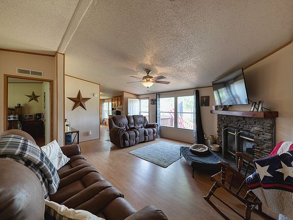 Check out this very well-maintained home nestled on a spacious 5 acres. As you step into this home you will feel the warmth and inviting atmosphere. The large kitchen offers plenty of space for cooking while enjoying family meals. A fireplace in the living room makes those cool evenings even more relaxing. The primary bedroom is very spacious with a walk-in closet, and you will love the custom built tile shower. Step outside the primary bedroom onto a large covered patio looking out into the yard. There are hiking or riding trails throughout the back section of the land making great morning and evening walks to enjoy nature and wildlife. There are three outbuildings that will remain with the property, two of which have electric ran to them.