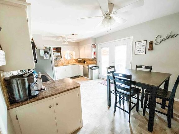 3 BEDROOMS, remodeled bathroom, covered front & back porch, RV Parking on the North side, circle drive, fenced yard.