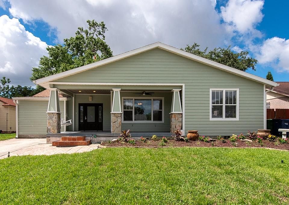 STYLE, PRACTICALITY, and LOCATION!!!! This charming and meticulously maintained craftsman home in Tampa, Florida, is located just a mile from UT, Armature Works, and Hyde Park in the vibrant West Tampa Riverwalk neighborhood. This 4-bedroom, 2-bathroom home boasts 1,662 sq ft of living space with a newer roof and central AC. Step onto the awesome front porch, complete with a swing, rocking chair, ceiling fan, and wood slat ceiling, perfect for relaxing evenings. Inside, a welcoming foyer opens to beautiful wood floors throughout and large windows in the living room that flood the space with natural light. The dining area includes built-in shelving, adding a touch of charm and functionality, while the kitchen boasts stylish granite counters, a tile backsplash, a newer sink, ample storage, and modern stainless steel appliances. A door from the kitchen leads to a rear deck, ideal for outdoor dining and entertaining. The primary bedroom is spacious, with a tray ceiling and a large walk-in closet with an LED vanity mirror. The master bath is super luxurious and spa-like, providing a serene retreat. The other bedrooms are generously sized, with one offering a convenient laundry closet. Enjoy the large fenced-in backyard with a storage shed and plenty of parking options, including street parking. Plus, with no HOA or CDD fees, this home is an excellent find in a prime location.
