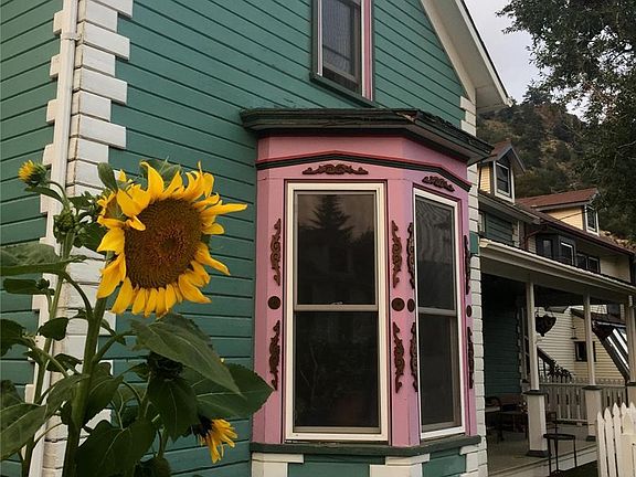 Charming mountain Victorian in historic Idaho Springs with postcard views and full southern exposure. This majestic home sits above the town on .65 acres, an entertainer's dream with a serene porch offering beautiful mountain views, a private yard with mature fruit trees. The private yard also offers a new custom retaining wall, patio, as well as irrigated raised garden beds, a chicken coop, and storage shed along with off-street parking. Youre welcomed inside the home with large windows, tall ceilings, beautiful moldings, fresh paint, & gleaming hardwood floors throughout. The kitchen features a large pantry, granite countertops, and glass backsplash. The master suite includes a private room perfect for a home office as well as a large walk-in closet along with an updated bathroom which features a claw foot tub. Walk 5 minutes to Historic downtown with unique shops, bistros, distilleries, rafting, and mountain biking! Only 25 min to skiing, and 25 min to the Denver Metro area!