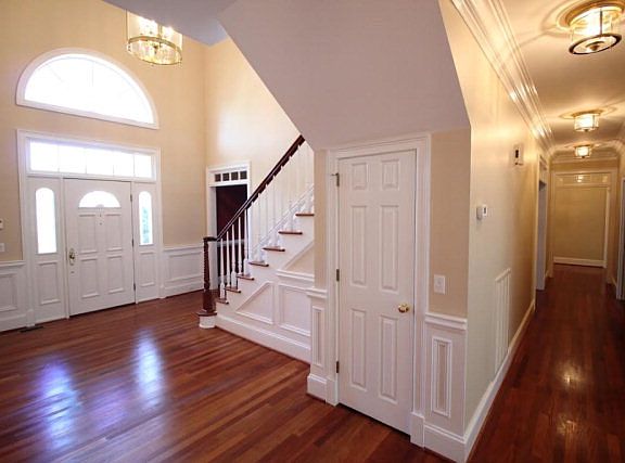 LOVELY CUSTOM HOME IN IMMACULATE CONDITION Amenities and finishes boast gleaming hardwood floors, Mahogany and Brazilian Cherry flooring, plantation shutters and specialty ceilings. 4 BR, 4 full BA, 2 half BA, master and additional BR on main level. Formal LR w/gas log fireplace, den, sep. DR, breakfast area, huge finished basement w/storage galore, 2-car garage, smaller garage, covered patio.