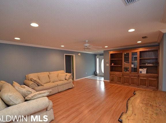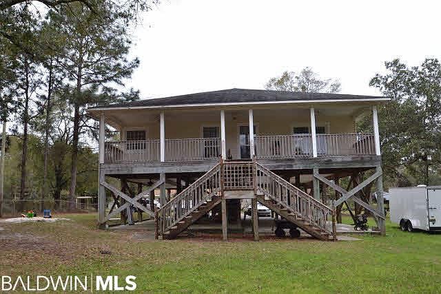 Raised Beach Cottage situated on Perdido River just a short ride to Perdido Bay and Gulf of Mexico. Well maintained home with 3/2 and office/hobby room. White Cabinets, granite counters and all appliances to remain. Including Refrigerator, Washer and Dryer. Laminate wood, tile and carpet. Large family room and smaller living space off kitchen could be formal dining if desired. Front and Rear porches overlooking water on 2 sides. Large lot with grassy area, partially fenced and boat launch on property. Plenty of covered parking under home. Exterior is all vinyl low maintenance. Small pier and fish cleaning dock. Excellent weekend retreat or full time residence. Only 15 min to Pensacola/Cantonment area.