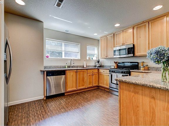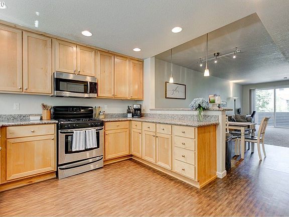Just listed! Formally the Model Home. This quiet townhome in the perfect west side location is waiting for you! New flooring in the ample kitchen and dining area which features slab granite counters, SS gas appliances (Fridge included), maple cabinets, Pantry, community park & rec room, fenced private back yard. Minutes to excellent shopping, MAX, Intel & Nike. A huge tandem garage that is perfect for an extra car or endless storage. Masks & booties are required. Open House Sat and Sun 1-3pm.
