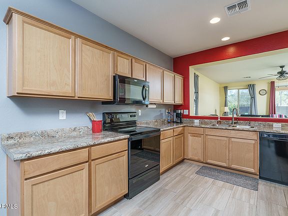 Great opportunity for the first-time homebuyer with this original owner home that offers 3 bedrooms and 2 baths in 1480 SqFt. The eat-in kitchen overlooks the great room and features Beech cabinetry, lots of counter space, black Whirlpool appliances, and a custom-built walk-in pantry. Sliding doors lead out from the great room to a large, private backyard with artificial turf for kids and pets to play on, lime tree, extensive paver patios for seating areas, 8x10 storage shed, and the above-ground Bullfrog spa is included! The master bedroom has a walk-in closet and en-suite bath with extended vanity and zero-threshold shower with glass surround. Other features include plank tile flooring throughout living areas and baths, double sinks and a tub/shower combo in the hall bath, tankless water heater, gated front courtyard, front security door, and a 2 car garage with expanded driveway, overhead storage racks, and an insulated 8-ft door. Refrigerator, washer, and dryer included, too! Schedule your showing today!