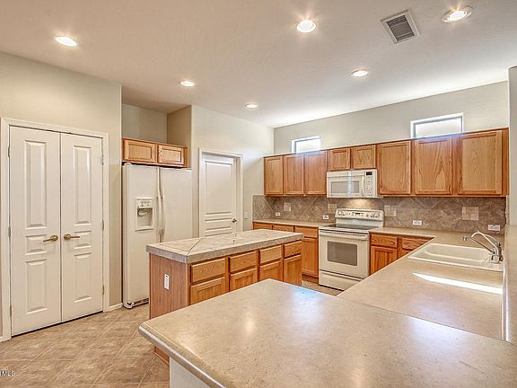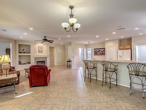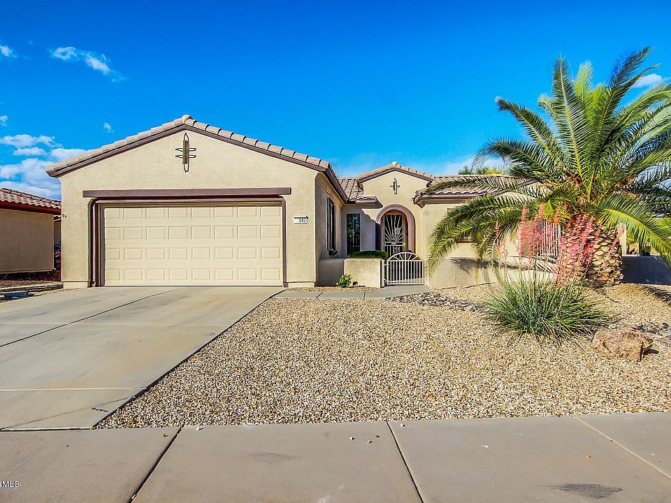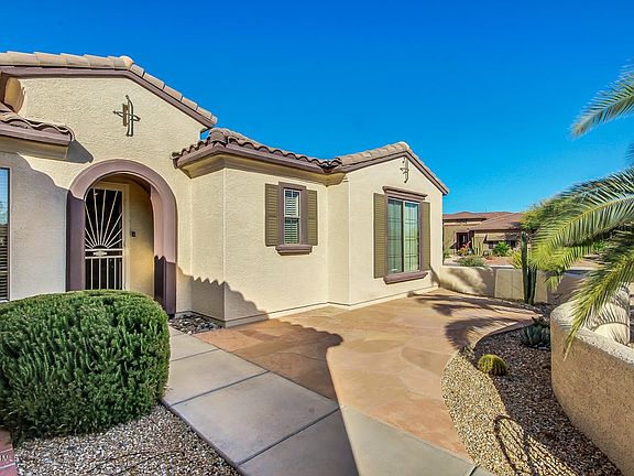 For more information on this property, contact the Listing Agent, Catherine Barton at (623) 826-9392 or CatherineBarton@cox.net. "We enjoyed picking out this wonderful homesite. We like peeking at the mountains from our courtyard and feel a gentleness around the property. This is a special place." A Captivating Pineapple Palm Welcomes You to this Spotless Home. Highly Sought After Valencia II in an Impeccable Location. Large, Oversized Lot with Professionally Done Landscaping, Beautiful Large Trees. Two Bedrooms, Office, Great Room, Nook, Bar, Dining Room, Spacious, Covered Patio. Entertainment Center and Gas Log Fireplace. Lots of Tile. Soft Colors. Raised Panel Doors. Bright and Light Kitchen with Island. Washer/Dryer/Refrig Remain. Master Suite with Bay Window. Laundry Room with Cabinets. Great Garage Featuring Sunny Window, Workbench, Sink, Cabinets. Come Join the Fun at Sun City Grand!