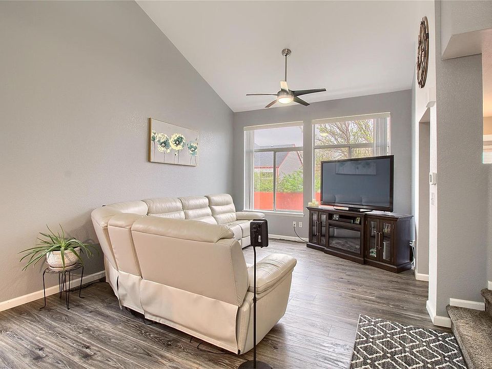 Lovely home in a nice neighborhood conveniently located by shops and DIA. As you walk in, admire the newer ash color wood laminate floors as your eye travels upwards towards the vaulted ceilings. Through the large bright windows, you'll peer out into the backyard, which has great grass foundation as well as a garden bed with a sprinkler system for your flowers and veggies! The kitchen is nicely fitted with enough cabinetry for all your storage needs. Additional storage space can be made from the unfinished basement until you can determine how you will design it yourself! Will it be a master suite, theatre room, or entertainers space? The possibilities are up to you! Let the soft carpet floors cushion your feet as you travel upstairs to your new master retreat. This large bedroom includes an ensuite, walk-in closet and bright windows. Come check out this cozy home for yourself!