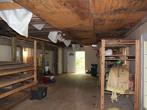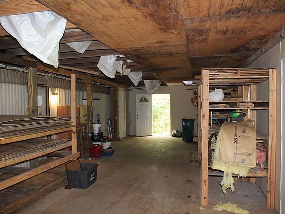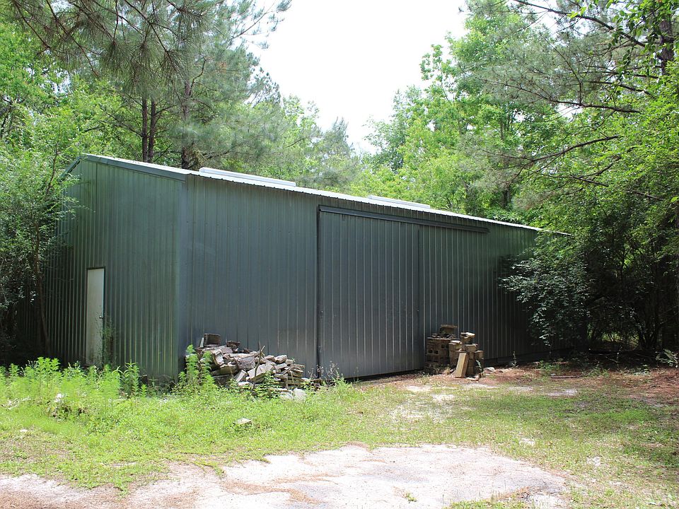 Unique property in Saucier situated on 8.8 acres with beautiful surroundings. Mobile home located inside a covered shed with inside storage and space. Front porch overlooking ponds on property. A paved path brings you to a large workshop with roll up doors for storage.