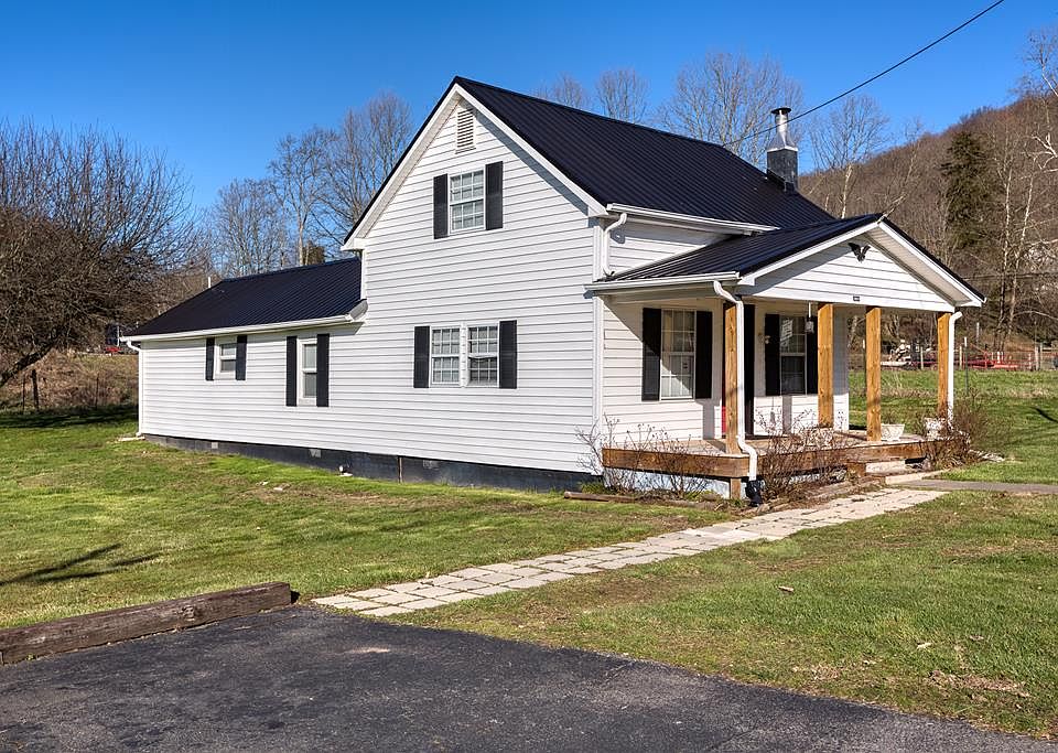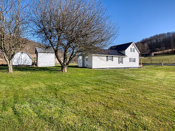 This charming rustic cabin home, originally built in 1908, is a unique and affordable creekside home in the country. The recently rebuilt covered front porch would be a great place to have your morning coffee! Features include vinyl siding, energy-efficient vinyl insulated windows and a newer metal roof (installed ~2013). The unique layout of this small home offers excellent storage options with two storage closets on the main level, a large closet area in upstairs bedroom PLUS a dedicated laundry/utility area just inside the back door. Kitchen appliances (refrigerator and electric range) are included! New electrical service installed in 2020, new water line installed in 2019. Both propane heat and electric heat installed. This home offers a level, easy to care for partially-fenced yard with fruit trees, two outbuildings and a paved driveway with carport. As is the case with many 100+ year old cabin-frame homes, ceiling is a bit low and some flooring is not level.