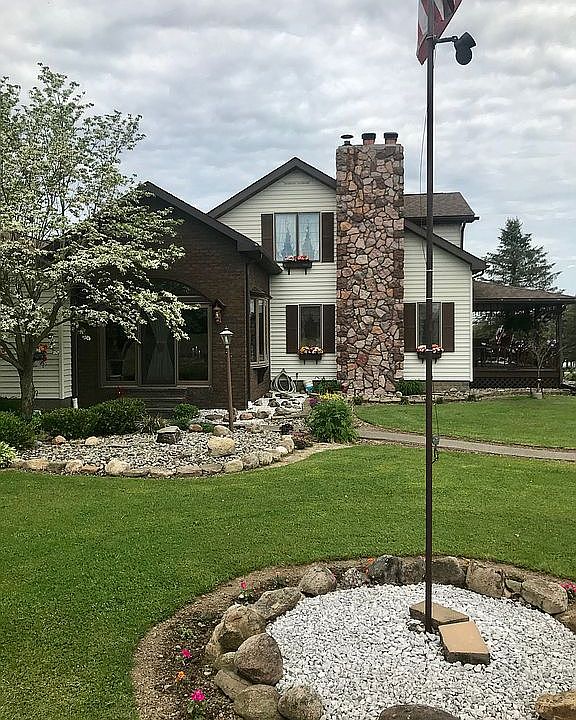 Well kept home with many custom features including custom built cabinetry with oak trim throughout. Heated floors in sunroom and downstairs bedroom. Ceiling fans throughout home. Beautiful sunroom newly painted. Trex brand decking on back deck. Dry basement with storage. Natural gas hot water baseboard heat. Attached garage and large machinery shed plus 2 outside storage buildings. Home sits on 5 acres with beautifully landscaped yard. Located in desirable school district. 35 miles from Lake Erie. A must see property. *OF NOTE* 100 acres of woods/tillable land is also available for purchase in addition to the home on 5 acres.