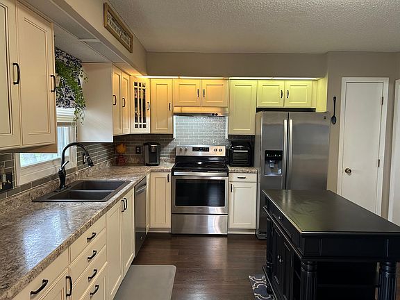 Beautiful with many updates. Custom kitchen with white cabinetry and SS appliances, spacious dining room with hardwood floors and deck access to backyard. Main level features 4 bedrooms with one currently being used as laundry room. Private master 3/4 bath and full main level bathroom with new vanity and flooring. Lower level family room with gas fireplace, day windows plus large 12 x 10 bedroom with egress, 2nd window and closet plus 3/4 bathroom. Walk out to the oversized 28 x 27 heated garage with service door to backyard. Deck has stairwell to backyard. Roof is 2019, Central air 2015, HW heater 2010 and Furnace 2011. This home also features an oversized lot measuring 66 x 205 for family entertaining and has a playset and storage shed as well. So much to offer located just 1 block from grocery store and few blocks from schools and Hwy 212 access.