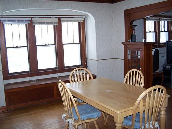 <br>Charming & move-in ready, gorgeous original (unpainted) crown molding, trim, built-ins & hardwood floors, enclosed sun porch, 14x11 main level master bedroom, remodeled bath, eat-in kitchen w/ appliances & large formal dining rm, walk-thru 4th bedrm cou<br>ld be office/den, oversized one car garage w/ shop area, low maintenance vinyl siding & more