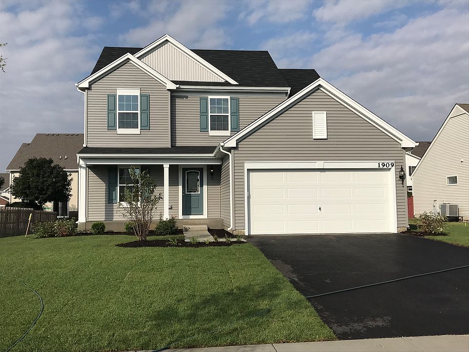 Enjoy the modern layout of the Ontario floor plan, designed for your comfort and lifestyle. This home features: three bedrooms plus loft, two-and-a-half bathrooms, a two-car garage, and basement. Along the foyer is a functional living and dining area, great for formal dining and having guests over. Passed the dining room is the kitchen with breakfast dining area and pantry. Off the kitchen is the Ontario's family room with a wealth of open space including a fireplace, which is adjoined by the breakfast dining area. Beautiful grey hardwood floors wrap the rooms together with a seamless flow. The second floor is host to three bedrooms and a loft. The owner's suite includes a tray ceiling, walk-in closet, and private bathroom. The two additional bedrooms are situated around the centrally located bathroom. The loft provides a versatile space for whatever your new home needs. Newly installed white vinyl privacy fence with cape cod caps, as well as a 800 sqft stamped concrete patio with built in fireplace.