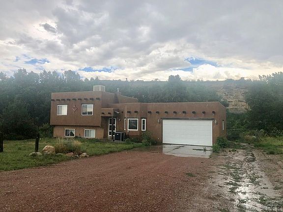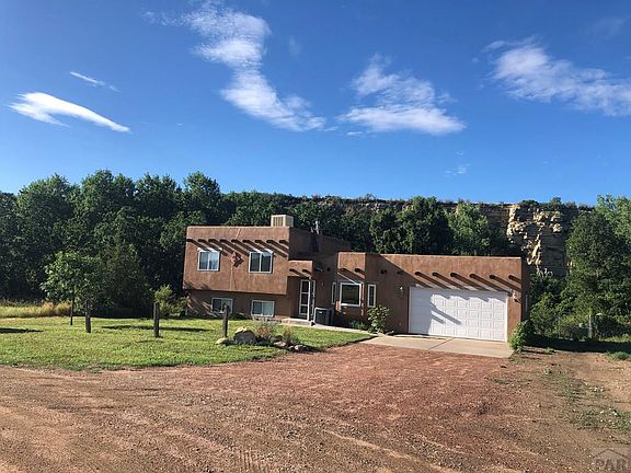 You won't want to miss this stunning Adobe Style home! This is house is bigger than it looks and at this price, it will go fast! This home has plenty of space for everyone with 5 bedrooms, 4 baths, a living room, family room and office. All of this in a magnificent location! Two rear decks and a patio are the perfect locations from which to enjoy the majesty of the cliff rising at the back of the property and the tranquility of the creek. A gas fireplace in the family room, tile floors and tile countertops in the kitchen, and a gorgeous wood beamed ceiling are some of the features that give this house character. This house is equipped with both a swamp cooler and central air. Colorado City truly is a hidden gem. Small town living just 30 minutes from Pueblo!