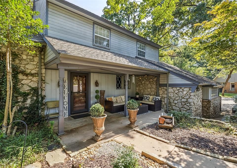 Welcome to 1909 Blue Jay Ct, a beautifully updated home that perfectly blends rustic character with modern comforts. Nestled among mature trees, this property offers incredible curb appeal with its stone exterior, ivy accents, and inviting covered front porch.