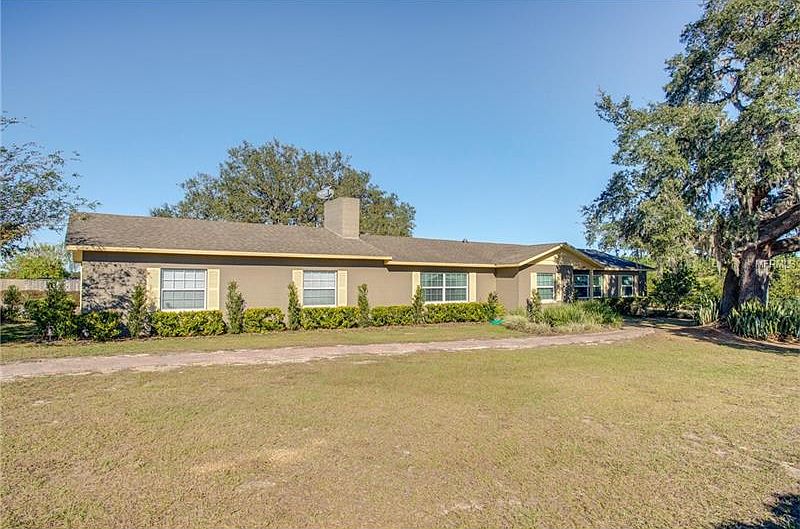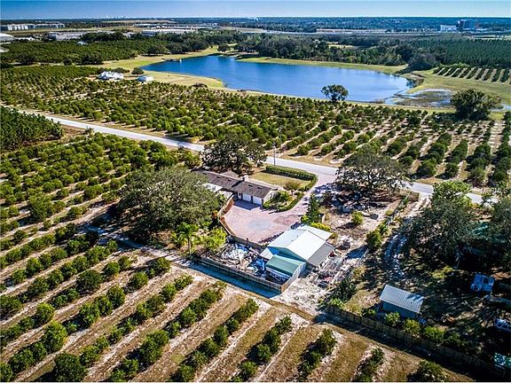 You have to see this one to believe it! Surrounded by acres of citrus groves, this 3 bed/2 bath home has truly been transformed into a luxurious oasis. Sitting on almost an acre of land and NO HOA, you will find the main house, HUGE over 950 sq/ft utility barn with workbenches and so much extra storage. Plus you will find so much landscaped green space providing plenty of gardening options. Step inside and you are met by the open living area with neutral tones and rich wood floors. The dining room flows seamlessly to the living room and both have ample space for grande furniture sets. The well equipped kitchen has been updated with beveled granite counters, an abundance of custom cabinets, breakfast bar, HUGE walk-in pantry, and newer appliances. Just off the kitchen sits a cozy dinette with french door access to the rear, covered deck. The master suite has ample space for a king set and features a fireplace and dual entry walk-in closet, The attached en suite is top notch with upgraded designer vanity that includes an over counter bowl sink and the shower has been upgraded with gorgeous tile and glass barn door. A utility room provides extra storage and room for full sized machines. Out back the covered patio looks out over the enchanting yard space with meandering oak trees and paver trails. The property is fenced and gated and must be seen to appreciate. Property is just minutes from the 429 expressway and the newest Florida Hospital is less than 2 miles away.