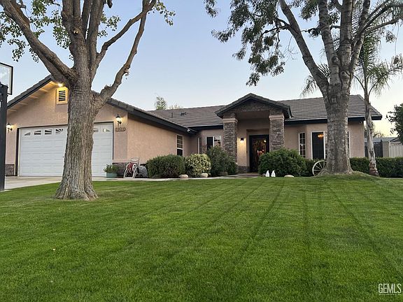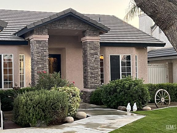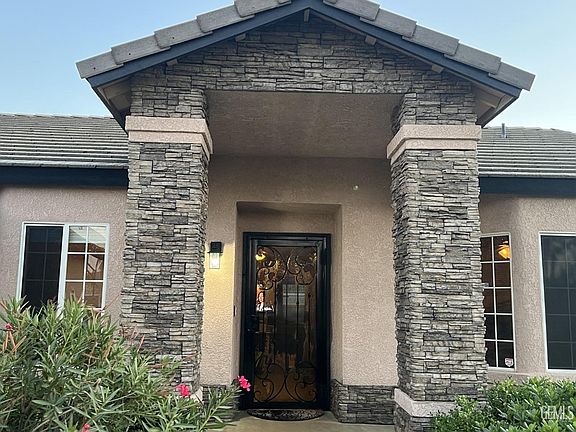 Step into your dream home! This 1910 sq ft haven is calling you. The motivated seller presents a move-in ready paradise with a tile roof, front porch fountain, and rock post-wrapped charm. Inside, discover a split-wing 3 bed + office layout, 2 full baths, and a utility room with cabinets. The kitchen is a chef's delight - granite countertops, stainless steel appliances, and extra storage. Tile flooring in living areas, laminate in bedrooms - zero carpets! Enjoy an oasis pool, fully landscaped front/backyards, a covered patio, and a BBQ counter with a fridge. RV parking, tinted windows, and fresh exterior paint add to the allure. Outdoors boast cemented dog runs, palm trees, and a grounded basketball hoop. An epoxy-floored garage, 2 sliders, and remodeled bathrooms with granite countertops are extra perks. The house comes with a Propane firepit, 2 TVs, in-ground wood fire pit, surveillance system, patio shade sail, and an ADT security system (activate upon move-in).