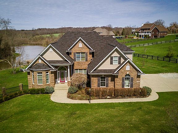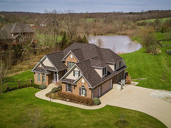 * REDUCED A WHOPPING 27,600!!* This FANTASTIC CUSTOM HOME in the ESTATE SECTION of CLARKE POINTE in Oldham County BACKS TO PRETTY LAKE. ** You will be impressed the moment you drive up. Lushly landscaped, this beautifully appointed BRICK WALKOUT 1.5 STORY home sits beautifully on an AMAZING ACRE lot. Walk up to a COVERED PORCH and take in the beauty of an impressive front door with ''art glass'' with a large arched window over the top and two side lites that let in plenty of natural light. Once inside you will be greeted by a gorgeous TWO-STORY FOYER that really makes a statement! To the left is an Office/Living Room/Library '' the options are endless for this pretty room with a lovely BAY WINDOW. To the right is the FORMAL DINING ROOM, defined by columns. Center stage is a 5-light chandelier. Straight ahead is a "WOW" GREAT ROOM. You will absolutely love the TALL WALL of WINDOWS that overlook that beautiful back yard and view of the lake. Two recessed and arched built ins flank the handsome gas fireplace with pretty wood mantle. 4-speaker SURROUND SOUND stays with the home. The GREAT ROOM is wide open to the DINE IN KITCHEN, making this home the perfect home for entertaining friends and family. There is an abundance of beautiful CHERRY STAINED cabinetry. An attractive tile backsplash complements GRANITE COUNTERTOPS. 5-BURNER GAS STOVE TOP, Built in microwave over conventional oven. There is plenty of preparation space. Breakfast bar. Roomy BREAKFAST NOOK. Down the hall is a ** HUGE FIRST FLOOR LAUNDRY ROOM ** A former large BEDROOM was converted to this SIZE EXTRA LARGE LAUNDRY ROOM with built in cabinetry for storage and folding clothes. A STEP IN CLOSET offers shelving for added storage. Just off the Laundry is a pretty FULL BATH. On the other side of the home is the PRIVATE FIRST FLOOR MASTER SUITE. A DOUBLE TREYED CEILING gives added dimension to this room. A beautiful "PICTURE WINDOW" overlooks the park like back yard and offers picturesque views of the lake. A private door off the Master Bedroom leads to a large deck. Upstairs find 3 large bedrooms and Jack N Jill Bath. The largest of the bedrooms makes a great TEEN SUITE with a STEP IN CLOSET and PRIVATE BATH. The WALKOUT LOWER LEVEL has EASY CARE 18 x 18 CERAMIC TILE FLOORING in the FAMILY ROOM and REC ROOM. A WET BAR is accented by decorative pendulum lights over a large peninsula bar. The WINE REFRIGERATOR stays. A full 5TH BATH is also in the Lower Level. Several large windows let in plenty of light. There is also plenty of unfinished space for great storage as well. Among this home's many updates and amenities: Kitchen REMODELED 2012. Newer DISHWASHER and GAS STOVETOP. Newer Refrigerator (2016). ALL NEW CARPETING 2017. Tile in MASTER BATH new in 2017, NEW ROOF in 2016, Tile in LOWER LEVEL newer (2013), Deck extended in 2016, Interior of home painted in 2017 and 2018, driveway sealed in 2017. Gazebo and fire pit added in 2009. Culligan Water Softener added 2013. Conditioner units replaced in 2011. Make an appointment to see this home today !