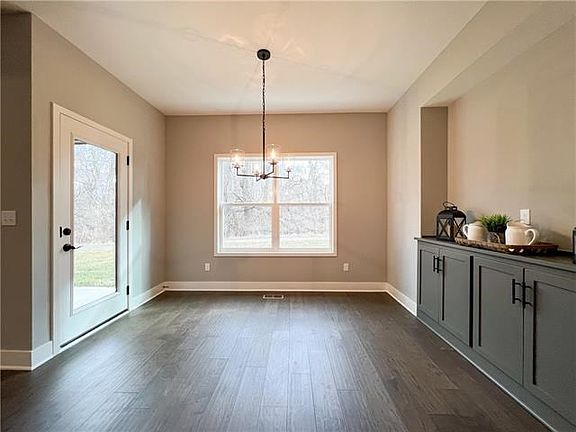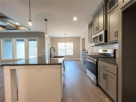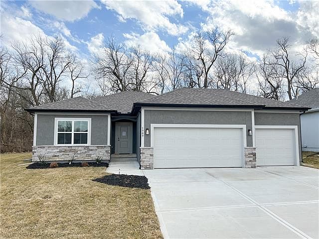 The "Greystone" reverse 1.5 story plan by Elevate Design + Build, located in Alexander Creek, Raymore's premier 55+ maintenance Provided community. This beautiful open floor plan has an amazing kitchen with large island, granite counters, & walk-in pantry. Great room has tall windows & fireplace. Incredible master suite with bench window seat in bedroom. Oversized tiled shower, double vanity, and walk-in closet in the master bathroom. Finished basement has 9 foot ceiling, large rec room, 2 bedrooms with large walk-in closets, a full bath, and plenty of unfinished storage area for all your stuff!