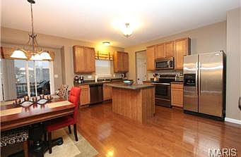 This is a wonderful opportunity to be in a prime location, conveniently located by 364/94/40/70. Great night life & restaurants w/ the popular Streets of St. Charles a short walk away. Why build when you can have a newer home that was also a former display? This lovely 2 story home has great curb appeal w/ brick front, 2 car garage that is completely dry walled with a lot of can lights b/c it was the former display. Features include: kitchen/breakfast room and 1/2 bath have hardwood flooring, intercom system, alarm system, in-ground sprinkler system, breakfast room w/bay window and 12 x 12 deck, vaulted ceiling in Master Bedroom with laundry room conveniently nearby, walk-out basement w/recreation room and full bath, 9 ft ceilings on first floor, stainless steel appliances, center island, built in pest treatment system, 12' x 12' patio, 36 inch gas fireplace with marble mantle, just to name a few. Great location, beautiful surroundings, lakes & park grounds throughout the community.
