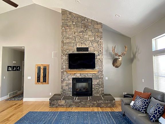 Must see, custom built home. Beautifully landscaped with vinyl fence on a 0.6-acre corner lot, located in Liberty Estates subdivision. 3 car garage including remote entry Vaulted ceiling in living room and bedroom 9-foot-high ceilings throughout the house, including the basement Large master bedroom with french doors Master bathroom has a huge jetted tub Custom cabinets and granite countertops in kitchen and bathrooms Covered deck Hardwood floors in kitchen, dining room, living room, entryway, and hallway Home sound system throughout the home including garage and covered deck RV cement pad Custom built sandbox Unfinished basement with the possibility of doubling your square footage to fit your family's needs. Lot still has room to build a detached garage, if desired. This type of home does not come on the market often. So, let us show you this house in person! Square footage figures are provided as a courtesy estimate only. Buyer is advised to obtain an independent measurement.