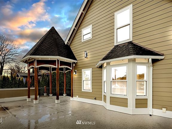 Walk to town from this fantastic Fairhaven location! Home built in 2007 but has historic charm with 9' & 10' ceilings, custom moldings, and fir and travertine flooring. Three master suites and a fourth potential main floor master or use as home office or den. Ground floor has 500 sq ft mil or guest suite with living room, kitchen, laundry and master. Home has private feel & views of the Chuckanut Mts. Wonderful large rooftop deck is over an oversized two car garage with potential shop space.