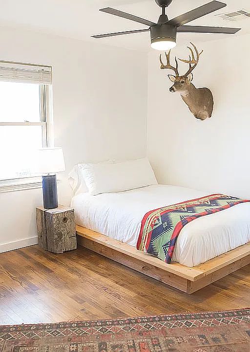 The home includes a large master bedroom, two additional rooms, and one and a half bathrooms. The large backyard is perfect for entertaining around the fire-pit, and the two-car garage updated with insulated walls, fresh paint, ceiling fans, and a bar can easily serve as extra living space on pleasant Oklahoma days.