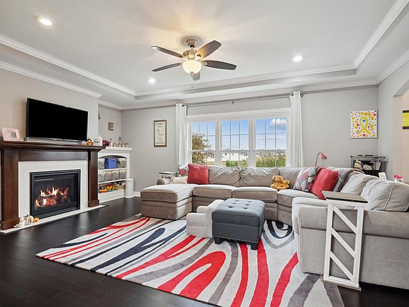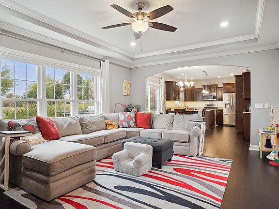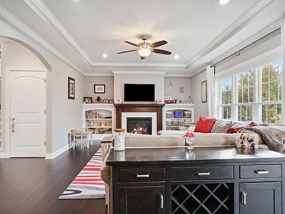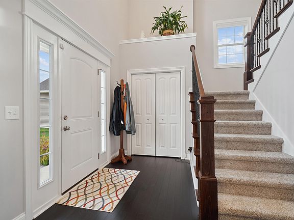 Situated in the desirable Eastern Ave Farms Subdivision, this expansive 5-bedroom, 3.5-bath home offers over 3,300 sq. ft. of total finished living space. The main level features a dramatic 2-story foyer, beautiful wood floors, and an inviting island kitchen with an eat-in area, perfect for family gatherings. New carpeting upstairs enhances the cozy feel of the large bedrooms. The primary suite boasts a huge tiled shower for a spa-like experience. The finished basement includes a stylish bar with a kegerator and rec room, ideal for entertaining. Outside, enjoy a nice-sized yard with a deck, a hardscaped patio, and the added privacy of a quiet cul-de-sac. With solar panels for energy efficiency, this home combines comfort, style, and sustainability.