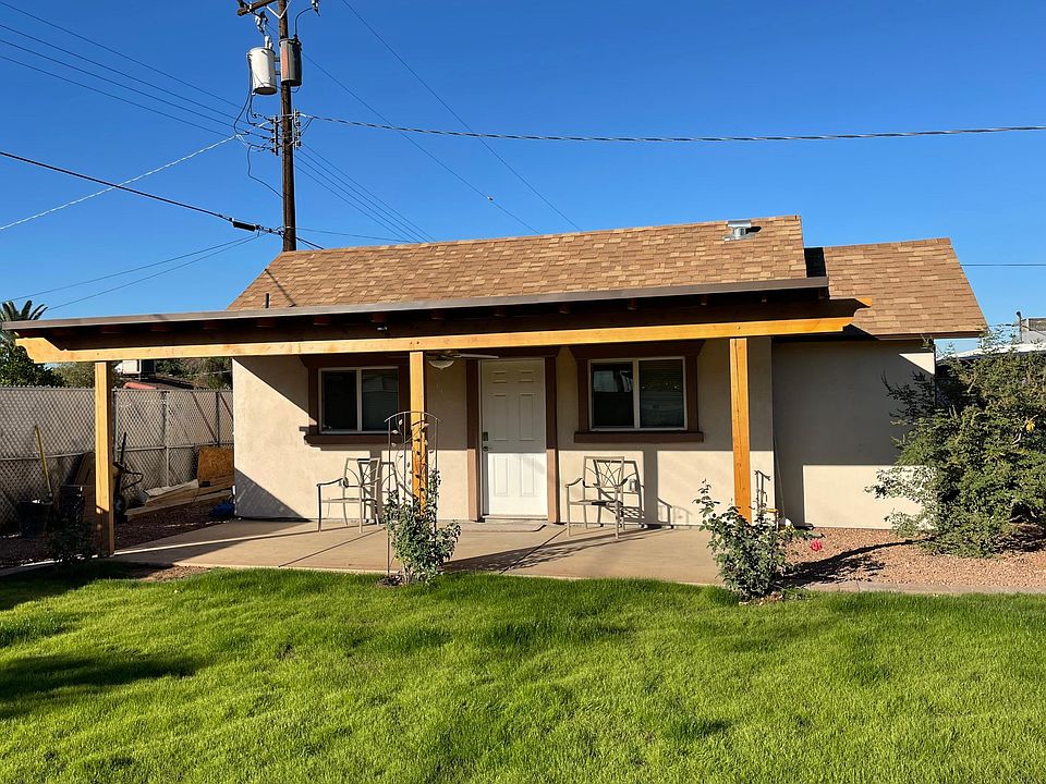 Cozy luxury like studio guest house available for rent. Primarily quiet, older neighborhood being revitalized, area and perfect for someone looking for a place of their own. All utilities are included. Overview: Beautiful relatively newly renovated studio guest house, newly renovated shower/restroom, newly renovated kitchen with french door stainless steel refrigerator, best air conditioning you will find anywhere (full sized HVAC unit, no window unit), luxury stacked washer/dry included, and private covered patio with view to nice lawn and garden like landscaping. Experience Comfort and Convenience of the Coronado Historic District. Enjoy living near Downtown Phoenix while Enjoying the many Eateries the City has to offer. So much Entertainment can be found at every corner, especially downtown Phoenix. Moments from Roosevelt Row and ASU Downtown Campus, Light Rail, Banner Medical Center and so Much More! Furniture shown for reference only (furniture not included), except small dining table. All utilities are included. 1 small well behaved pet maybe considered for $75 monthly pet rent with 1/2 month pet deposit. No smoking is allowed inside studio, smoking on private patio outside is okay.