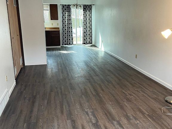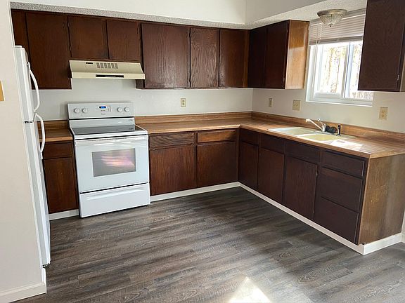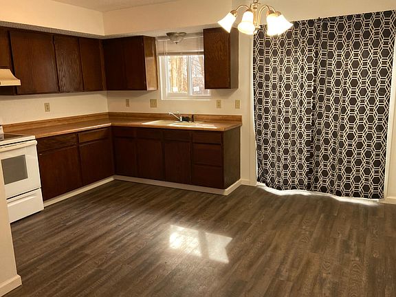 Flooring on first level, carpet, and paint redone a year ago. 2 large bedrooms and 1 bathroom on second level. Small private backyard with patio area and garage available. Renters pay all utilities. Responsible for mowing and snow removal. Pets allowed with some restrictions, 2 max, $20 pet rent each month, $300 non refundable deposit.