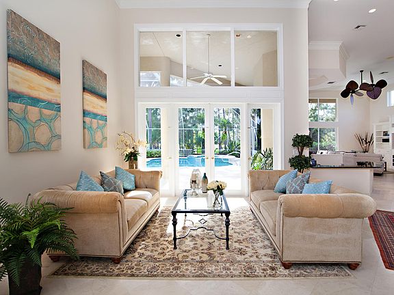 Breakers West - West Palm Beach,Florida -'Impeccable custom home located in the exclusive Flagler Estates section of Breakers West. Gorgeous views overlooking the 4th fairway of the Rees Jones course. Situated on over 1/2 acre with lush tropical landscaping and an abundance of privacy. Enjoy the outdoor living area with expansive entertainment areas including a screened-in pool/spa and covered lanais. Newly designed chefs kitchen with plenty of storage and top of the line appliances including Wolf, Subzero and Bosch. Dual master baths perfectly designed with exquisite marble and granite detail, perfect for relaxation. Additional fine features include wet bar with refrigerated drawers and wine storage, built-ins throughout the home, 2 car garage, + golf cart garage with additional space for parking and a private entrance gate into Flagler Estates Drive. Light, bright and airy, this home is move in ready! Various memberships available but not required
