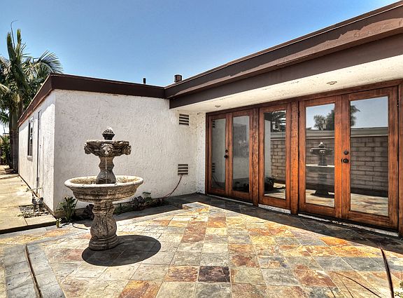 Minutes from the sand, enter this gorgeous one story home via the courtyard featuring a gushing fountain, slate tiles and colorful flower beds. French doors open up to ocean breezes in the living room which features hardwood floors, custom built surround sound and soft, recessed lighting ideal for entertaining. The remodeled kitchen/dining room boasts granite countertops with full backsplash, an island, newer cabinetry and a stainless steel gas stove and dishwasher. Host your BBQ on the back patio on smooth slate tiles, including a concrete pad for Jacuzzi. The master bedroom features vaulted ceilings, brand new carpet and a remodeled ensuite master bath fitted with a beveled glass skylight, glass enclosed shower outlined with travertine stone and dual showerheads. The second remodeled bathroom features a brand new tub, pedestal sink, and wainscoting. 2-car garage, including storage space galore, bike racks and washer/dryer hook-ups. Additional features include: * NO HOA fees * Dual pane windows * Newer furnace(4 years) * South facing (bright, airy) * Block walls The neighborhood boasts a highly acclaimed G.A.T.E. school, shopping and is a short bike ride to the beach, downtown Huntington Beach and the Pacific City project.