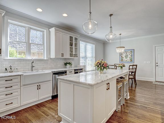 Located just inside Landfall's Eastwood Gate, this low maintenance brick home features 4 bedrooms, 3 1/2 baths (including a first floor master suite with elegant bath and walk-in closet) plus a large bonus room/studio above the two car garage. Beautiful crown moldings, hardwood floors, large raised terrace and fenced rear yard are just a few of the special features to be found in this beautifully maintained property.Enjoy apple trees and blueberry bushes in your own back yard, ride you bike to the beach or walk to area's best restaurants.