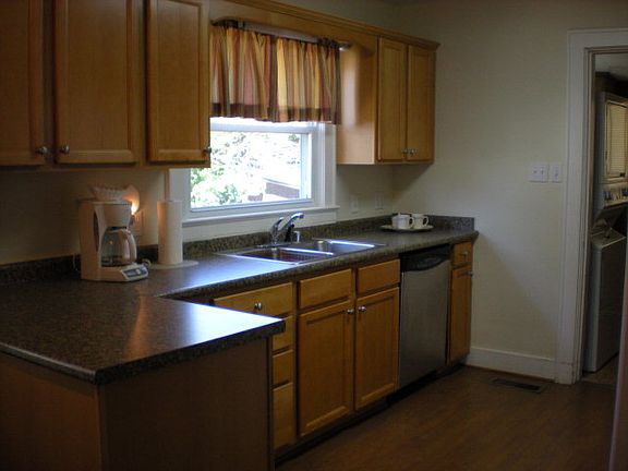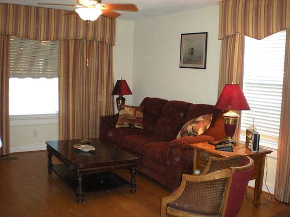 This home was remodeled for the handicapped owner 7 years ago. It is a very nice home with living, dining, and kit.open, office has lg arched doorway off living area, laminate flooring thru out,beautiful cabinetry,stove, ref., dishwasher,stack W/D, wall mounted TV in bedroom, custom drapes & plantation blinds,permanent ramp to covered front porch, deck on back,&2 car garage with elec.& work area