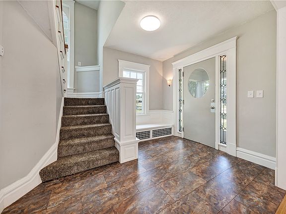 Welcome to this large beauty that sits on a corner level lot featuring a sizable playground. The main level features a foyer with charming original built-ins, hardwood floors in the living room and dining room, modern neutral paint throughout, a family room with a vaulted ceiling and walls of windows providing an excess of natural light. Enjoy first floor laundry and an additional room off of the dining area providing access to the back deck. The kitchen is equipped with newer appliances and leads to a covered porch and a second staircase leading to the upper levels. The second level has 4 bedrooms and a full bath. The third floor has another full bath and 2 bedrooms. The walkout basement provides plenty of storage space. There is a two-car detached garage and extra off-street parking in front of the garage. for showings.