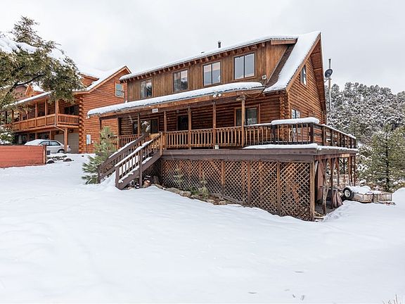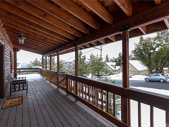 A True Log Home, nestled into the mountains, with breathtaking mountain views, awaits you! With incredible beamed ceilings and log walls, this 5 bedroom/3 bath home is the epitome of rustic tranquility and harmony. One bedroom downstairs, and 4 bedrooms up, make the perfect layout for large gatherings, or investment income. The kitchen opens up to the living room in an open concept, and both are adjacent to the sprawling deck overlooking mountains and forest, for miles. Finished basement has 2 separate living or entertainment spaces, as well as the laundry area with utility sink. Enormous brick fireplace downstairs has gas, but is also wood-burning...echoing the brick fireplace in the master bedroom. Just about 15 miles from the 5 fwy...you can escape into the woods. This is a MUST SEE property.