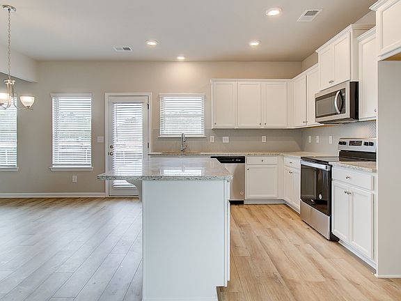 Open concept kitchen with island overlooking breakfast area and family room.First floor guest suite.Dining room with coffered ceilings.Primary suite with large walk-in closet, dual vanity, tub and walk-in shower.